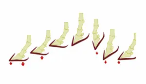 Esto es biomecánica pura. Para que el paso sea fluido, la pezuña debe "rodar" hacia adelante en la fase de despegue. Estudios de Higginson Cutler subrayan que un taco con la punta redondeada o biselada facilita este movimiento, reduce la tensión tendinosa y mejora la velocidad del paso.